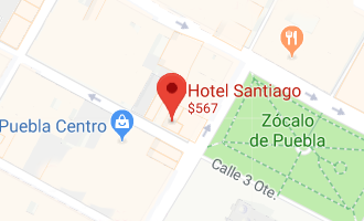 Hotel Santiago se ubica en la calle 3 Poniente #106, a unos metros de la Catedral y Zócalo de Puebla, justo en el corazón del Centro Histórico de la Ciudad. Nos encontramos en un edificio rodeado por monumentos y lugares emblemáticos.