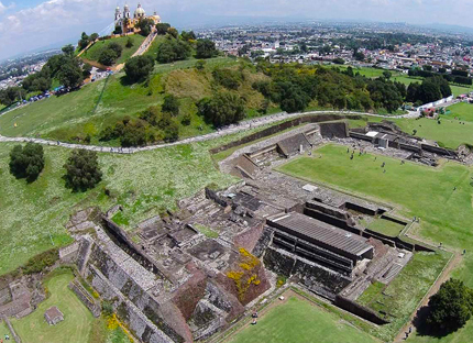 La Gran Pirámide de Cholula o Tlachihualtépetl es el basamento piramidal más grande del mundo con 400 metros por lado. Es también la pirámide más grande en volumen con 4.500.000 m³.